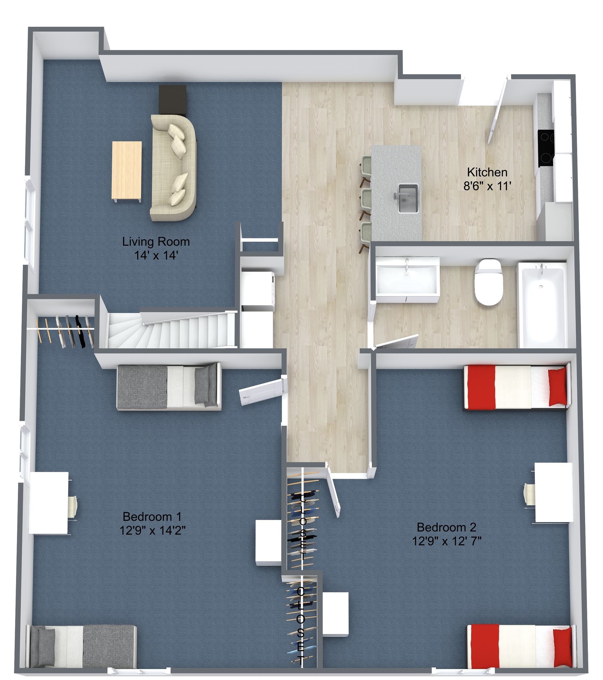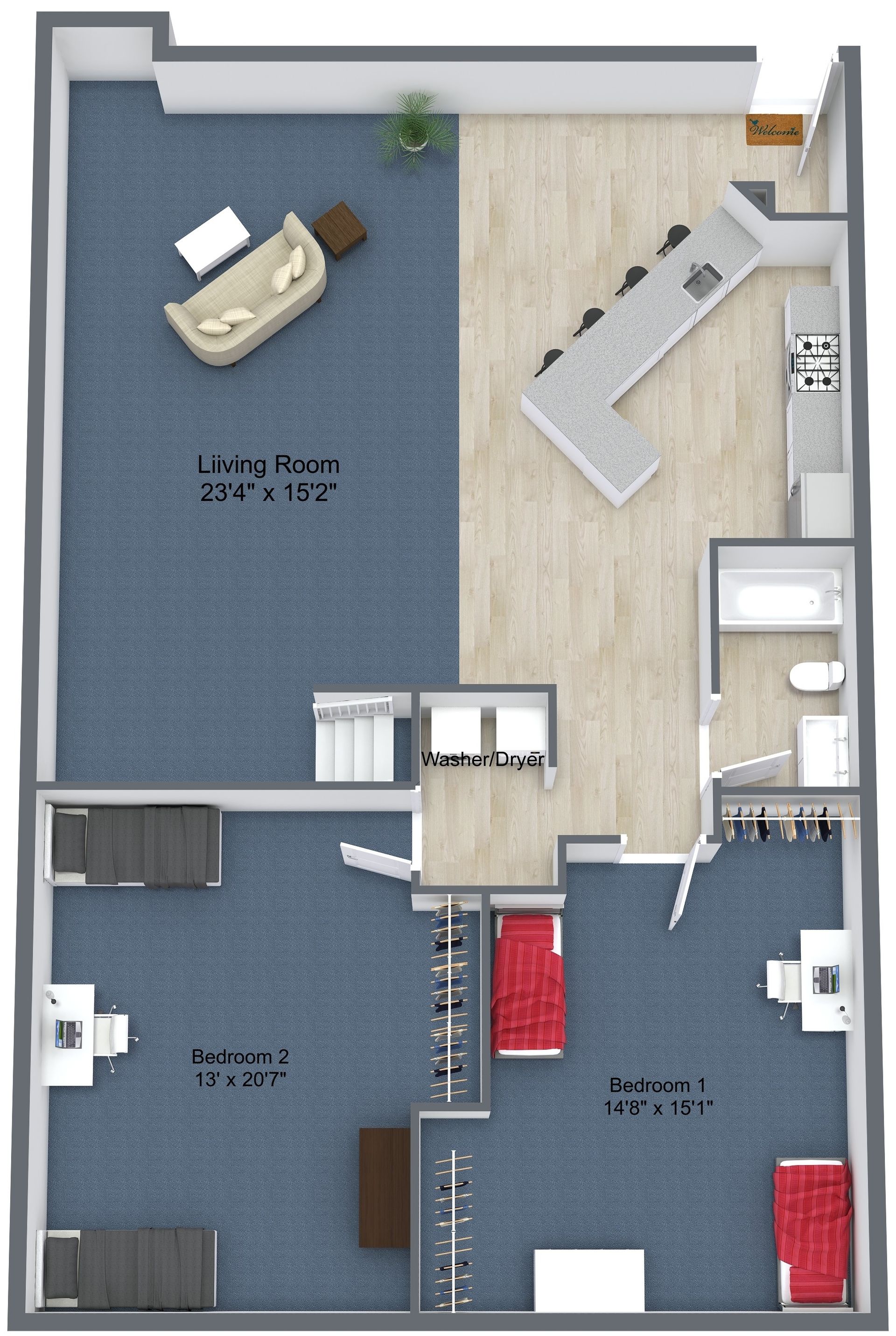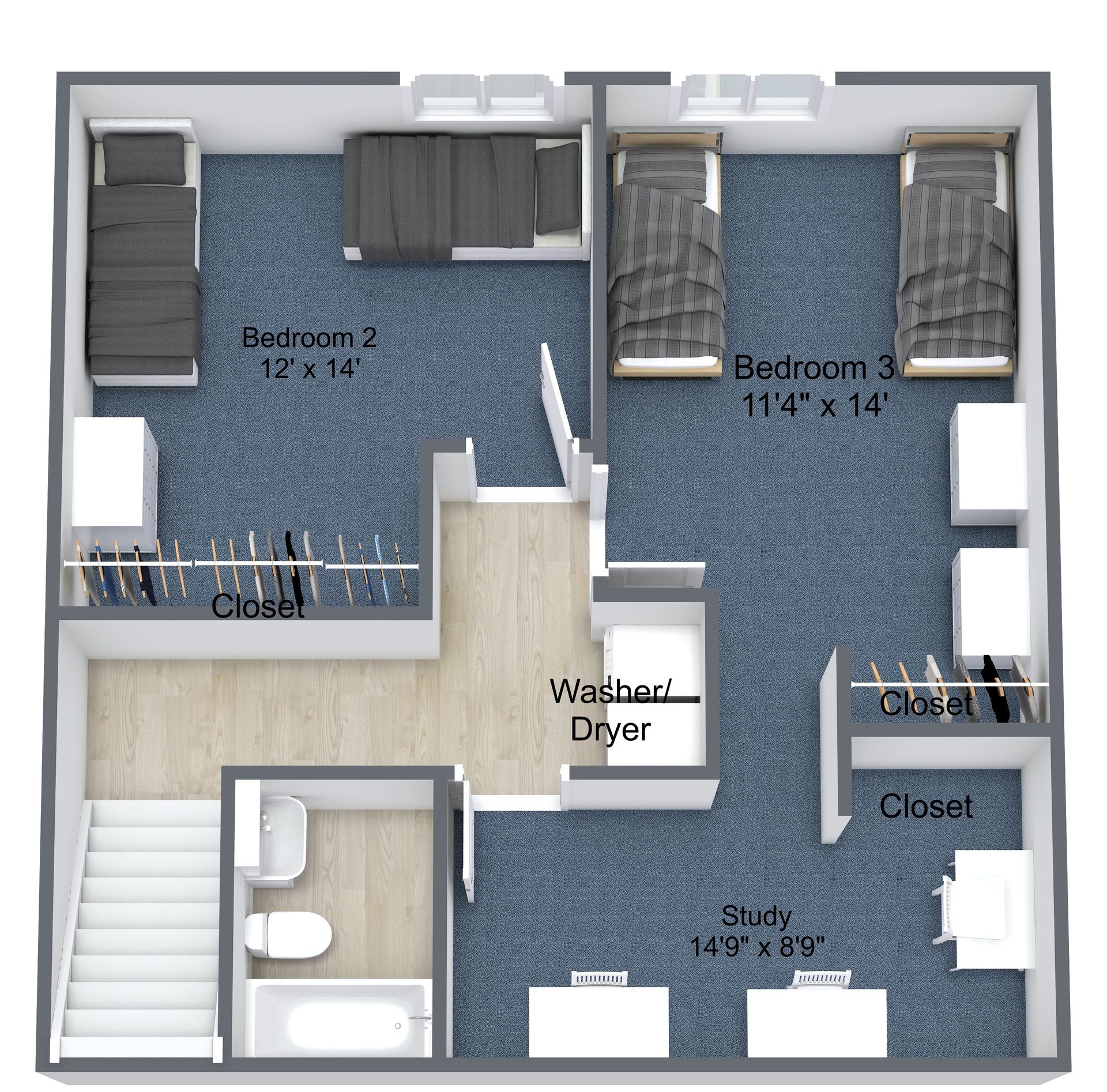 - 3 Bedroom with Study 2 Level / 2 Bath (Lower Level)