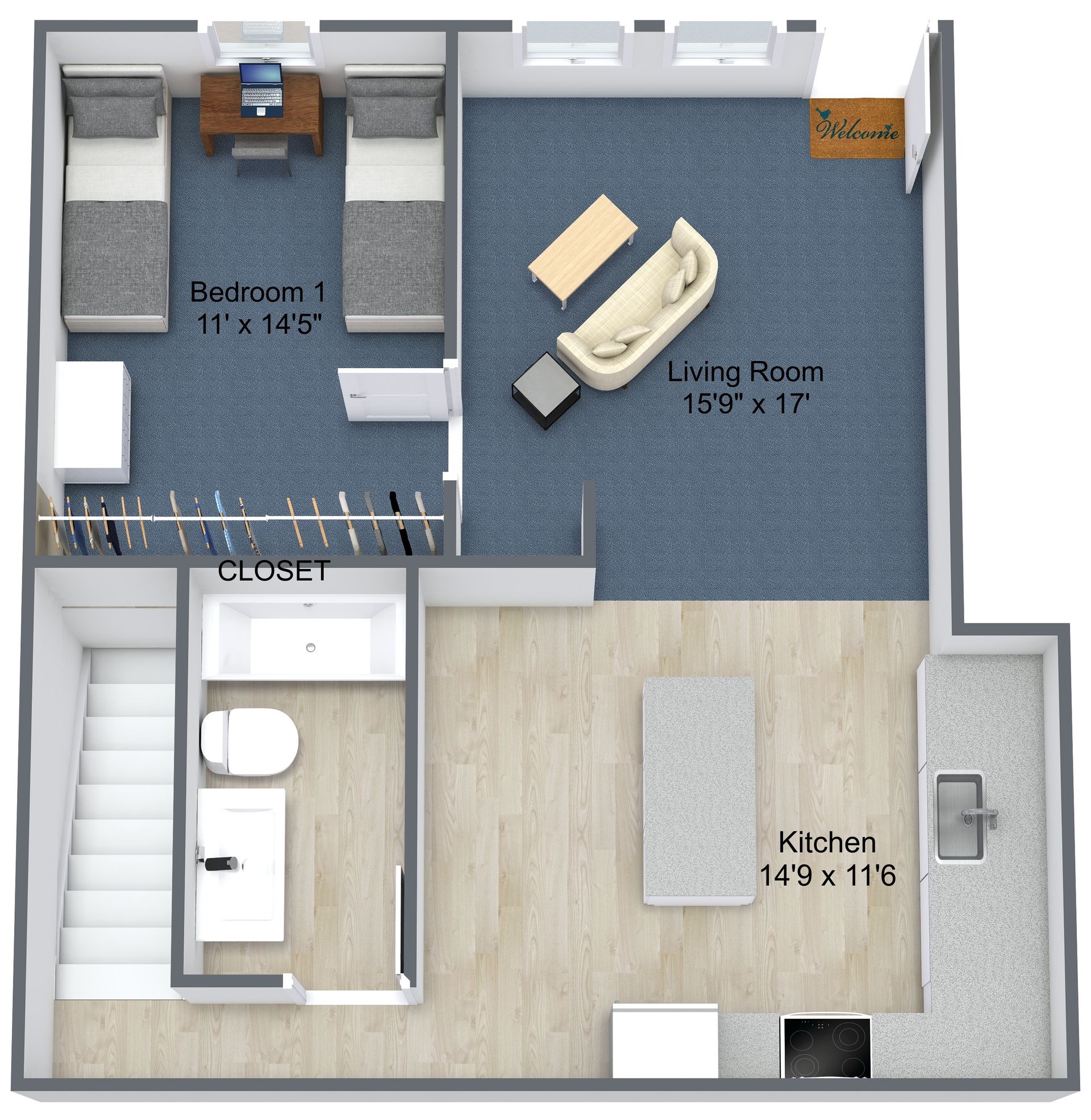 - 4 Bedrooms Loft / 2 Bath (Kitchen Area)