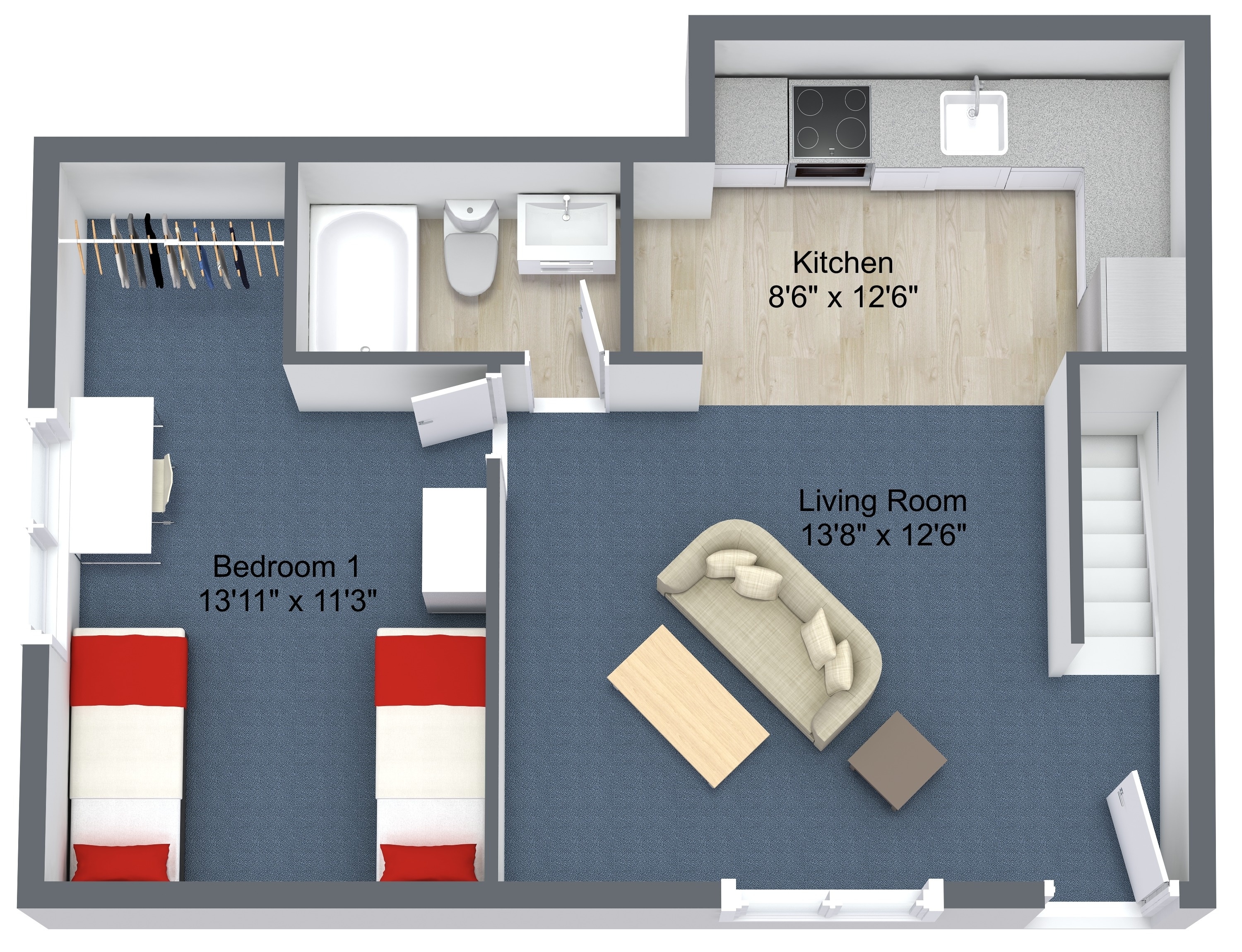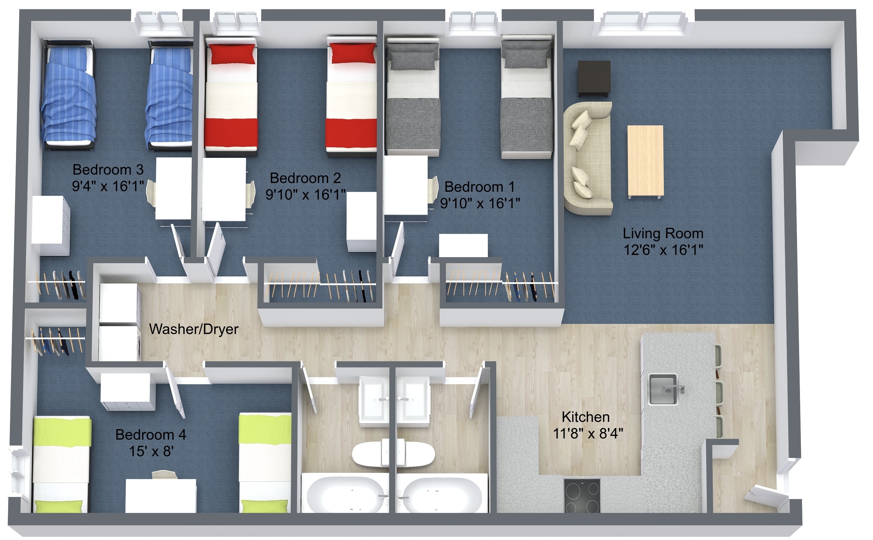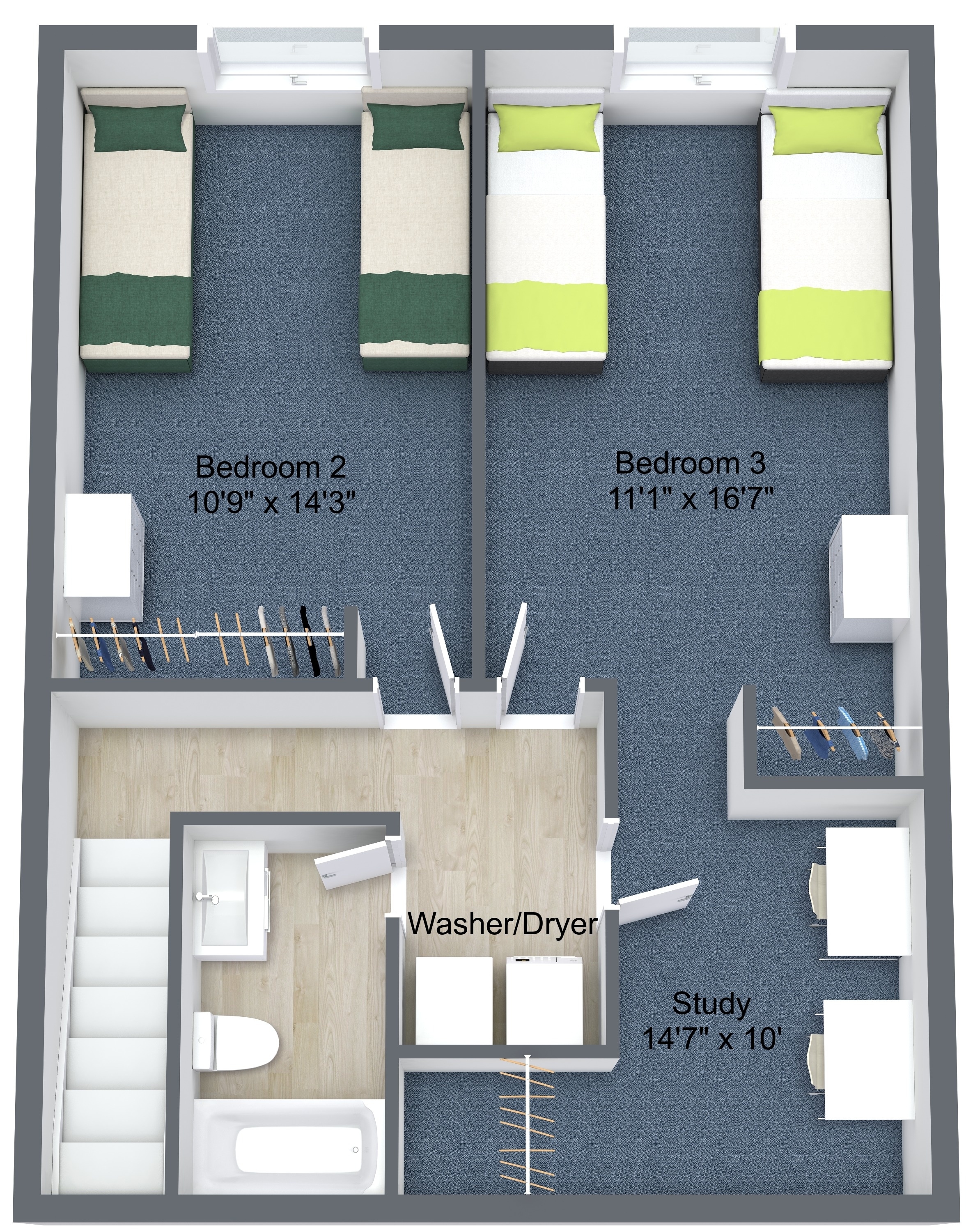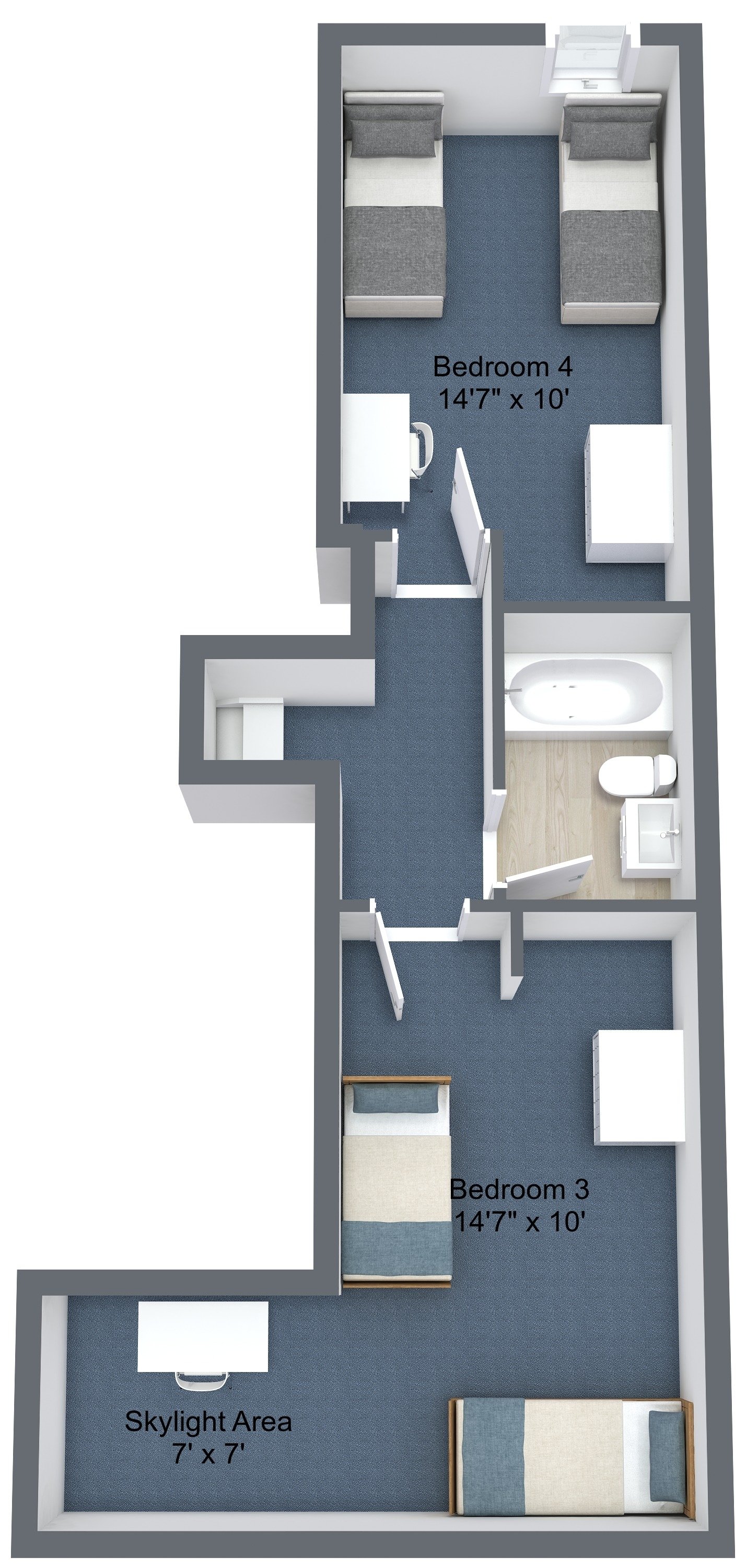 - 4 Bedrooms Loft / 2 Bath (Floor Plan) - Hallway by kitchen