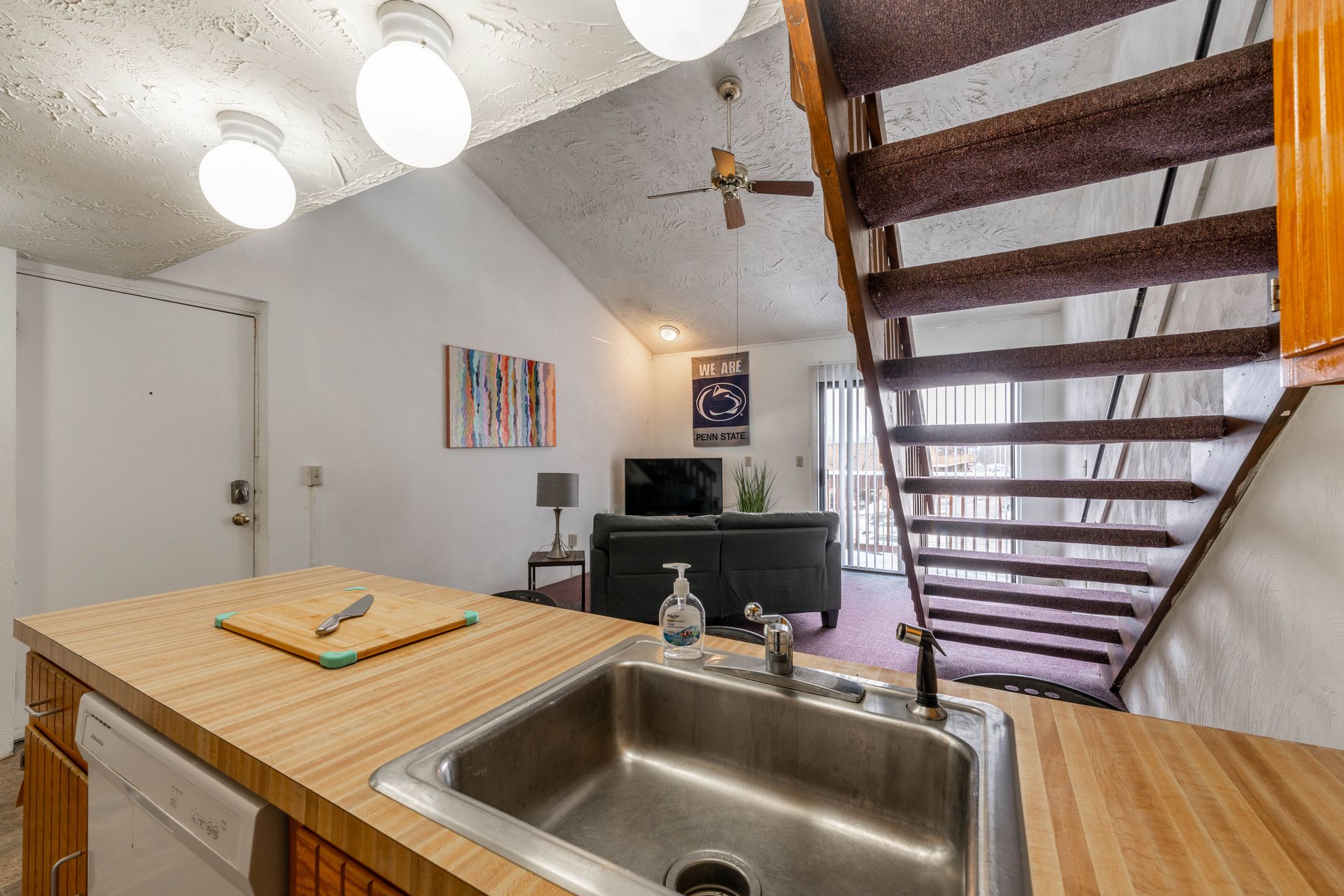The Lofts Apartments are comprised of contemporary tan stucco buildings situated one block east of University Drive on Bellaire Avenue. These bright and airy units are conveniently located and within walking distance to downtown State College and the east side of the Penn State – University Park campus, including the Pegula Ice Area, Bryce Jordan Center and Beaver Stadium.